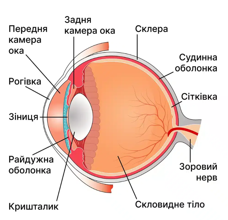 - Anatomy, Head and Neck, Eye [Електронний ресурс] // StatPearls Publishing. – 2024. – Режим доступу: https://www.ncbi.nlm.nih.gov/books/NBK482428/ (дата звернення: 17.09.2025).