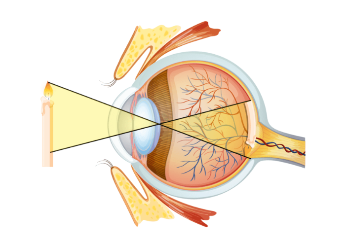 - Далекозорість – фокусування світла за сітківкою, через що близькі об’єкти здаються нечіткими.