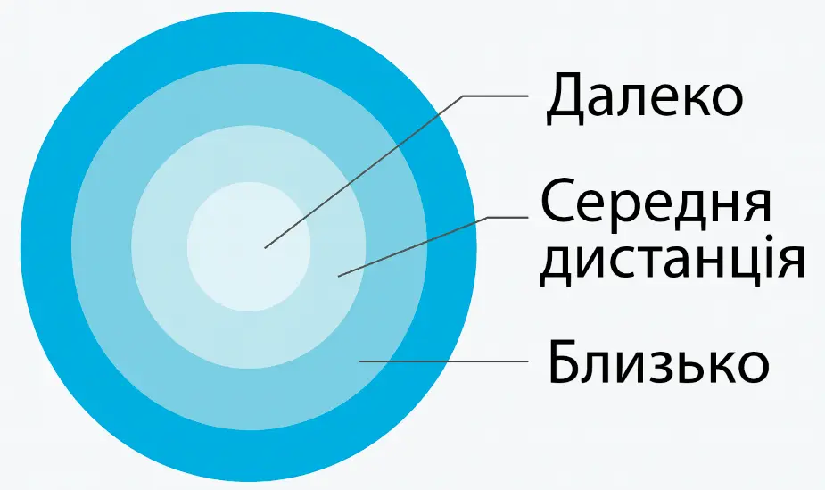- Наступні внутрішні кільця – Середня дистанція (екран 60–80 см, побутові задачі).